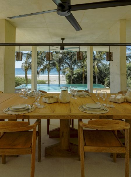 Casa Ohana is an exclusive beachfront villa in Puerto Escondido on Mexico’s Pacific coast offering a tranquil and luxurious retreat where the sound of the ocean and the warmth of the sun create a sense of calm from the moment you arrive This sanctuary blends contemporary design with local architectural elements to create a visually harmonious space that feels both elegant and welcoming and it is ideal for families or groups seeking comfort privacy and connection to the natural surroundings of Oaxaca’s coastline.