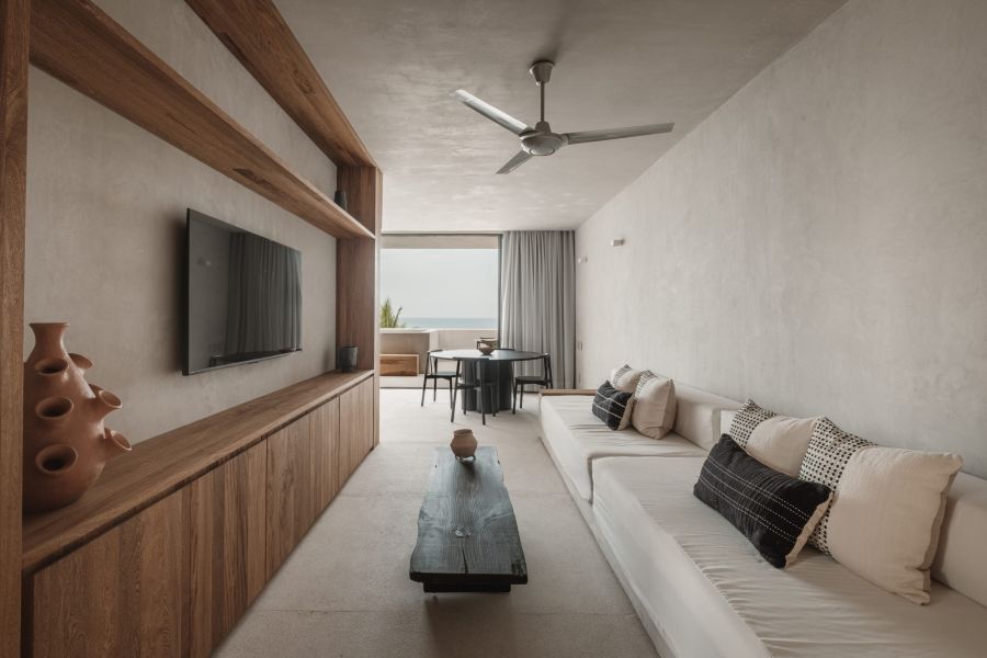 The space is thoughtfully curated with minimalist architecture natural textures and open areas that allow light air and ocean views to flow throughout the property Rooms and common areas are designed to feel private comfortable and serene offering a balance between design and functionality The overall atmosphere is relaxed and intimate making it ideal for guests who value aesthetics simplicity and a strong connection to their surroundings.