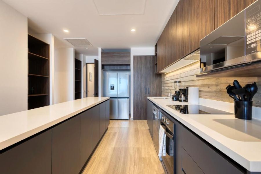 Guests have full access to the private residence and designated community amenities, which may include swimming pools, fitness areas, landscaped common spaces, and controlled-access entrances.